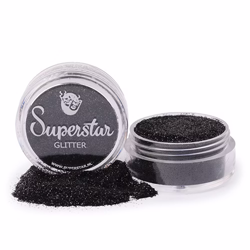 De Superstar Fine Glitter bevat fijne Polyethylene Terepthalate glitters van cosmetische kwaliteit.
