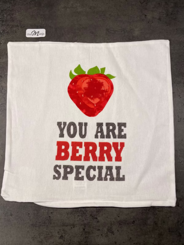 Katoenen kussensloop 40 x 40 cm met opdruk “You are berry special”.
